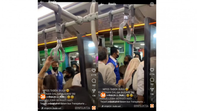 Dalam video yang diunggah oleh akun Instagram @infojkt24, terlihat seorang pria diteriaki oleh beberapa orang penumpang wanita. Pria tersebut kemudian digelandang keluar oleh salah satu petugas TransJakarta.