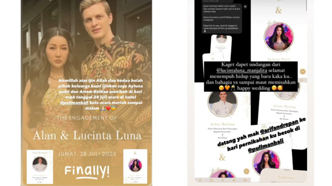 Dalam instastory, Lucinta Luna tiba-tiba membagikan kabar mengejutkan. Ia membagikan undangan pernikahannya dengan Alan dalam bentuk undangan online.