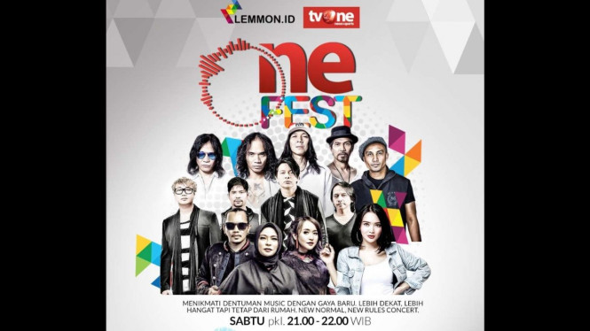 Sederet musisi ternama akan menghibur pemirsa tvOne di program ini. OneFest #newrulesconcert diharapkan bisa menjadi pelipur lara bagi yang belum bisa jalan-jalan.