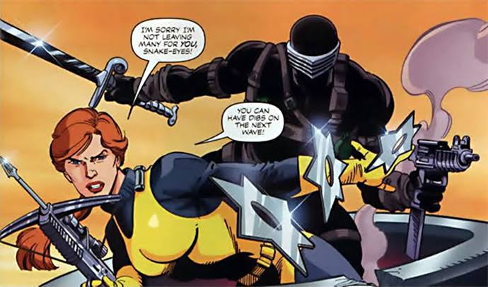 Snake Eyes memiliki hubungan spesial dengan Scarlett, satu-satunya anggota perempuan dalam tim G.I. Joe. Ninja berkostum serba hitam ini terkadang menyelesaikan tugas solo dengan hewan peliharaannya, serigala, Timber.
