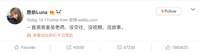 "Selalu menghargai guru Wu, tidak ada kencan, tidak ada video dan tidak ada cerita," ujarnya dilansir Drama Panda
