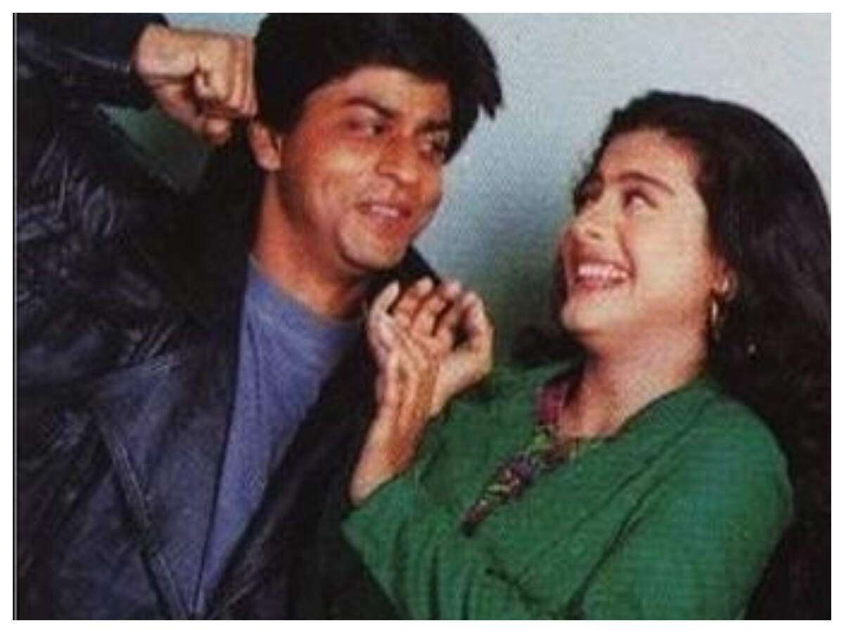 Dalam foto ini, Shah Rukh Khan dan Kajol terlihat bersenang-senang dalam sebuah pemotretan. Tidak hanya beradegan romantis, keduanya juga pandai dalam melakukan adegan komedi yang sukses membuat penonton terbahak.