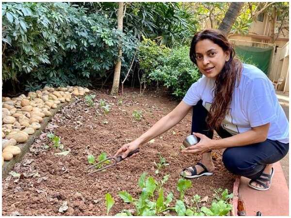 Belakangan ini ramai orang yang memiliki hobi berkebun di tengah pandemi virus corona (COVID-19). Juhi Chawla juga pernah membagikan potretnya sedang panen sayuran. Dia memperlihatkan lahannya yang luas dan ditumbuhi berbagai jenis pohon. Dilansir IntipSeleb dari GQ India pada Senin, 28 September 2020, Juhi menanam daun herbal seperti fenugreek, ketumbar dan tomat.