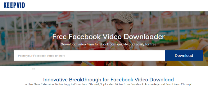 Keepvid merupakan salah satu situs yang memudahkan penggunanya untuk download video di Facebook tanpa aplikasi. Hanya dengan menyalin link video yang ingin diunduh, kamu lalu harus menempelkan link tersebut di kotak yang tersedia. Setelah itu, klik Download dan video yang kamu inginkan akan tersimpan di telepon genggammu.