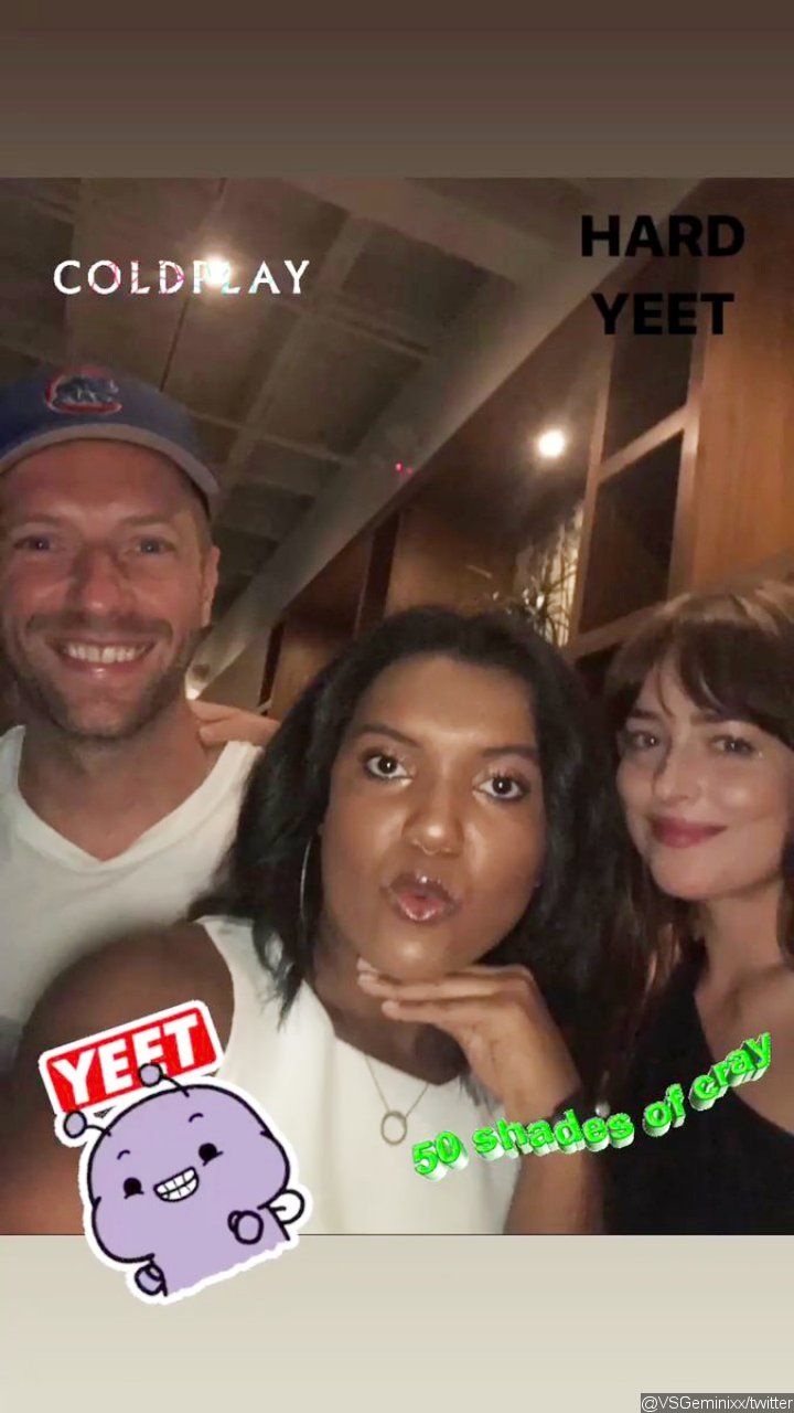 Bukti kebersamaan Chris Martin dan Dakota Johnson dalam acara film tersebut pun sudah beredar luas di media sosial. Dalam foto-foto yang beredar, Chris dan Dakota tampak menikmati pesta dengan ceria bersama dengan teman-temannya. Chris terlihat berbusana santai dengan mengenakan kaus putih dan topi baseball, sedangkan Dakota mengenakan atasan hitam dengan bahu terbuka. Berkat beredarnya foto-foto kebersamaan mereka dalam satu acara yang sama, publik langsung berspekulasi bahwa keduanya memang sudah resmi kembali menjalin hubungan.