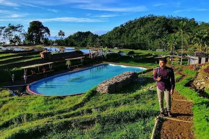 Jika ingin merasakan sensasi berenang ditemani pemandangan pegunungan dan sawah yang hijau, maka Pagubugan Melung menjadi tujuan tepat.