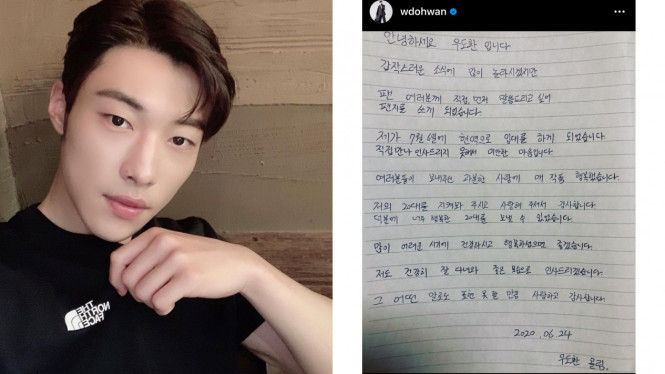 Tidak berselang lama, giliran Woo Do Hwan yang menyampaikan pengumuman ini kepada para penggemar melalui akun Instagram pribadinya. Dengan secarik surat tulisan tangannya sendiri, pria kelahiran 1992 ini menuturkan permintaan maaf karena mengumumkan waktu pendaftaran wajib militer secara mendadak.