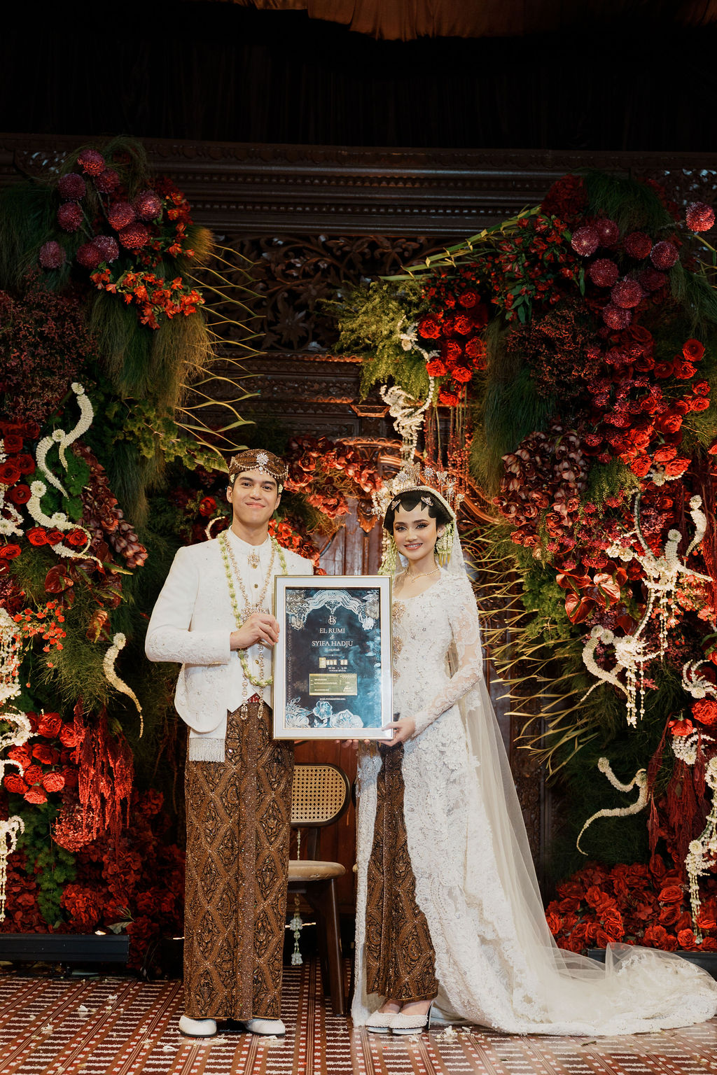 Syifa Hadju tampil begitu menawan dalam balutan kebaya dan veil putih karya Vera Kebaya yang semakin menonjolkan kecantikan dan aura pengantin yang menghiasi paras indahnya.