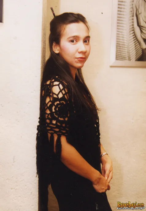 Menghadiri sebuah acara, Iyut Bing Slamet mengucir setenghah rambutnya dan tampil dengan pakaian berjaring.