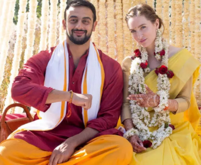 Keduanya memilih untuk menggelar pernikahan dengan gaya Hindu yang indah dalam upacara haldi dan mehedi. Ternyata, Elton bukan orang sembarangan karena merupakan pemilik kafe Puttu yang disebut sebagai salah satu kafe terbesar di Kanada.