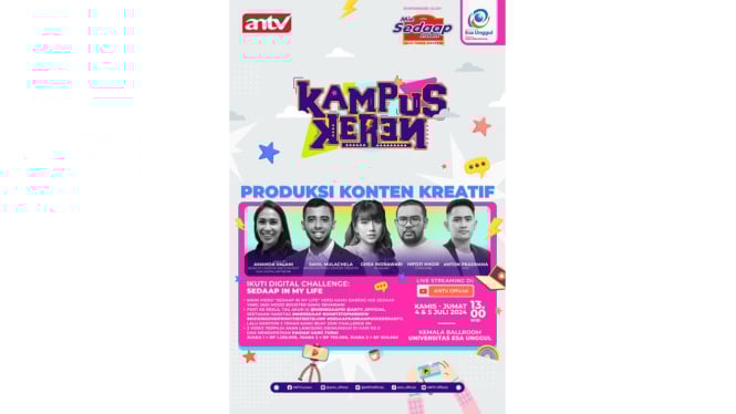 Sebelum acara utama berlangsung, Kampus Keren ANTV juga mengadakan digital challenge. Tantangan ini memberi kamu kesempatan buat menangin hadiah jutaan rupiah, lho! Gimana caranya? Gampang banget, kamu tinggal daftar di bit.ly/Lomba_Digital_Challenge sebelum tanggal 4 Juli 2024.
